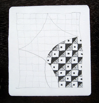 Grids are not my favourite kinds of tangle patterns but today my head needed something very ordered.  I began with a grid, added the string over the grid then picked up Totally Tangled to look for a few patterns I haven't tried.